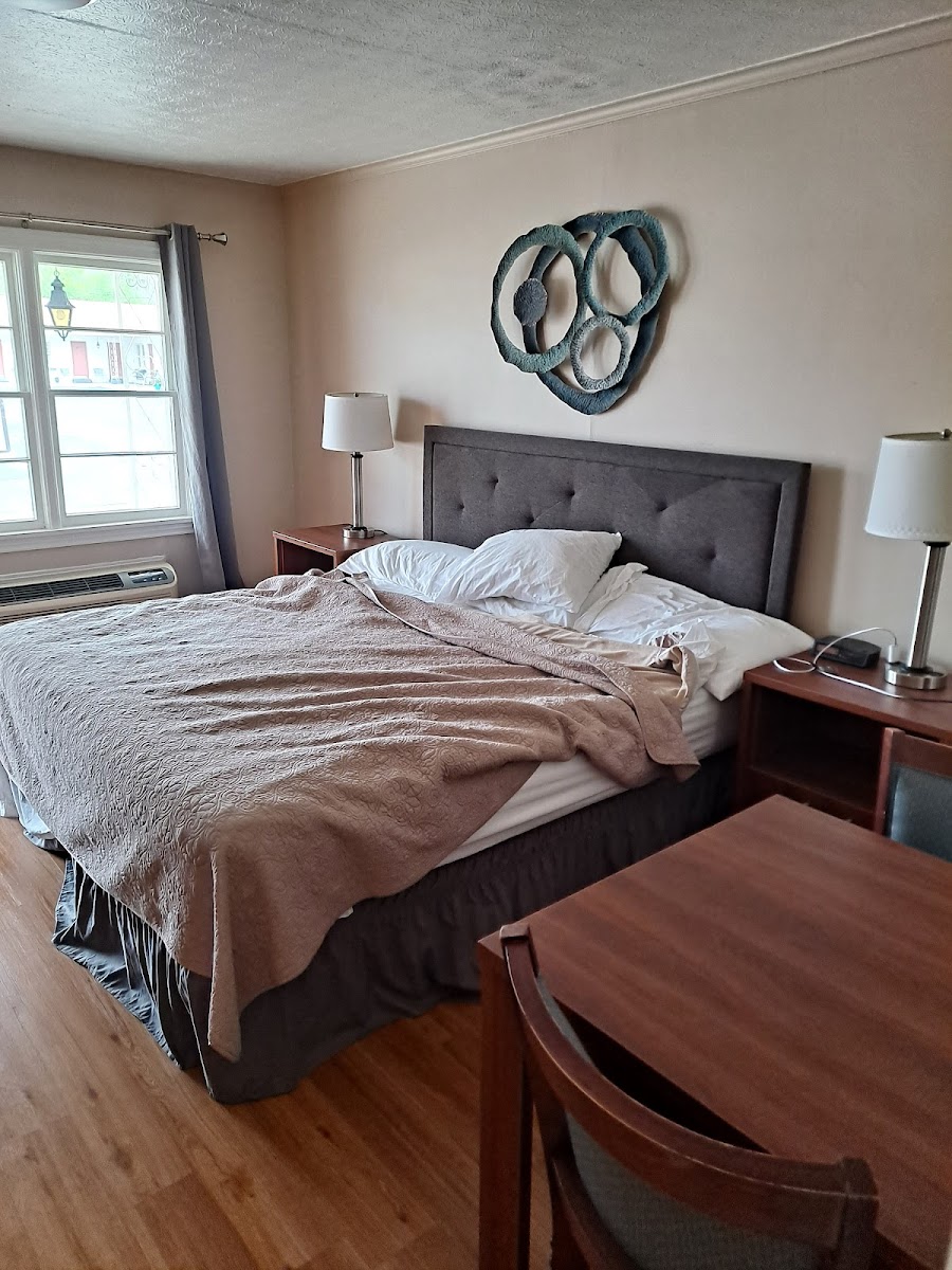 If you're looking for a quiet, clean, conveniently located & dog friendly spot to rest and relax, this is a great option. I'd say it's a bit overpriced for what it is, but not by much. If you're traveling with a dog, it's NOT overpriced, it's cheaper than the Choice Hotels I usually use so no hesitation to book there. The staff are pretty hands-off. If you need something, go ask and they'll help you out - otherwise you're mostly left alone (which I prefer). I was there for 5 days and loved that there's a perfect coffee shop across the street with a great place to work remote or sit on their porch and enjoy a coffee. Right next door is a typical diner with good food. The pool here is pristine - it's better than most I've even seen at larger hotels. I had 2 dogs with me and they were welcomed, and had lots of room to stretch their legs. Great place to stay if you're someone here fishing, as there's room for trailers in the lot and on the other side of the attached (currently empty) diner. Also well lit and safe if you're a motorcyclist traveling through!
